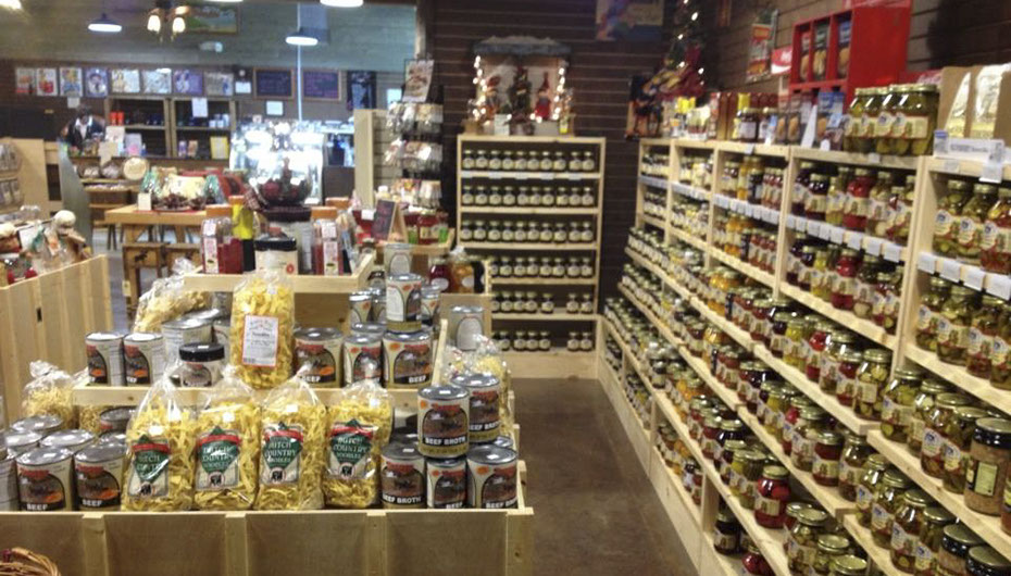 We have quilts and quilt racks, cookies cutters, amish baskets, nostalgic signs, sugar free and gluten free items. In addition to having the regions largest selection of amish jar goods, we also have the areas largest selection of amish deli meats, salads and cheeses. Gourmet amish sandwiches are served throughout the day and we have seating to accommodate up to 65 people!